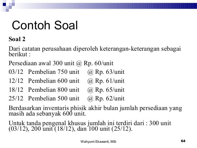 Contoh soal persediaan barang dagang metode fisik dan jawabannya.